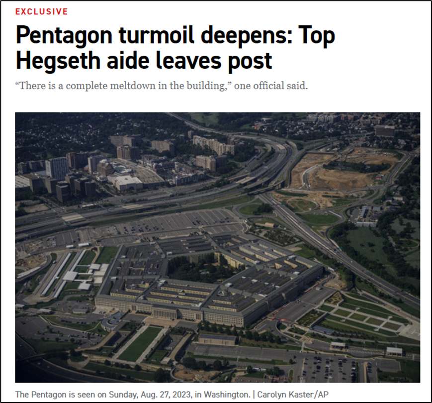 截至目前,赫格塞思团队已有幕僚长、副幕僚长及高级顾问三大要职空缺。一名国防部高级官员直言:“五角大楼已完全崩溃,这暴露了防长的领导问题,他任用了一些并不维护他利益的人。”